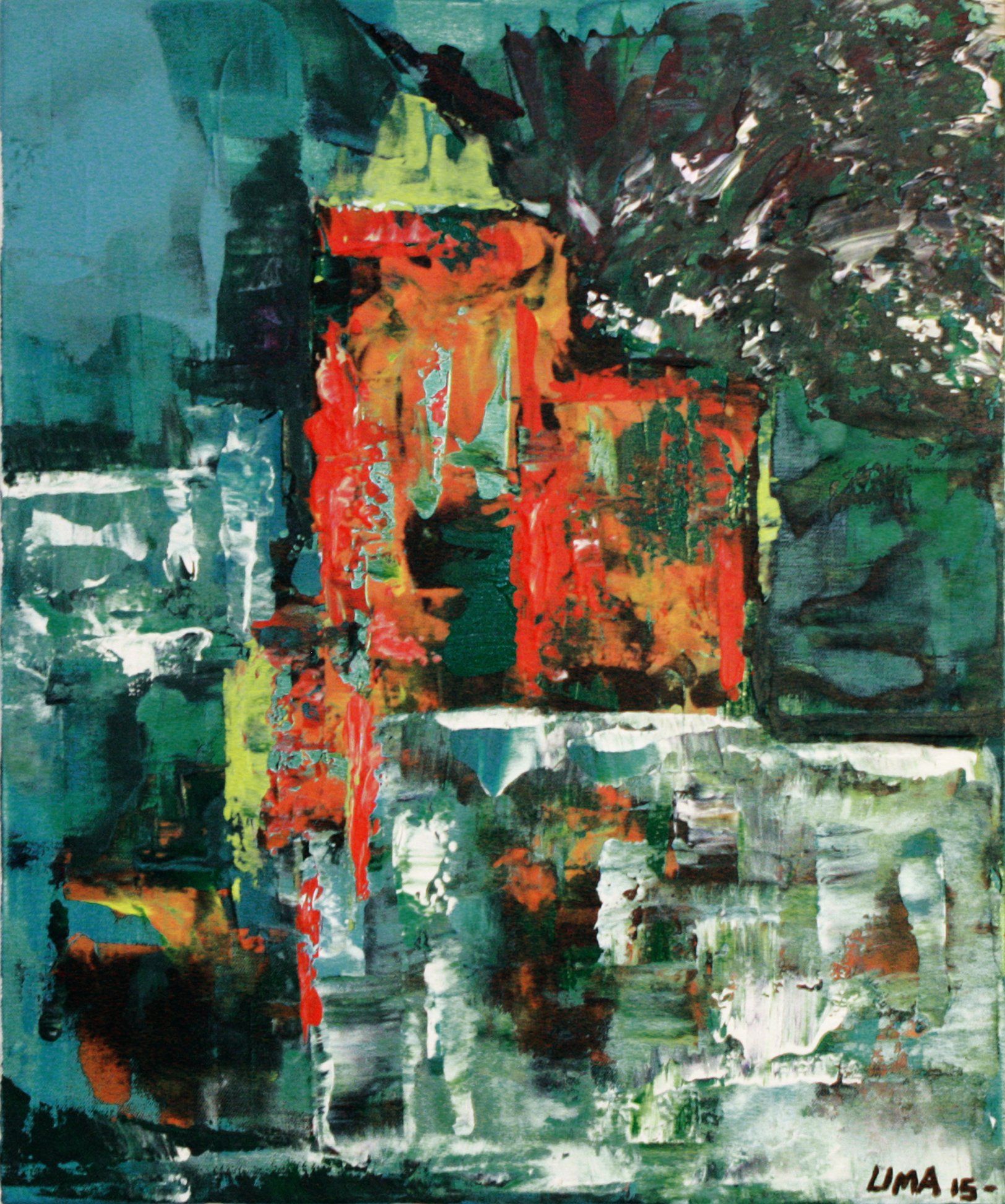 The Autumn Tree tells us a story. The reddish, orange abstract tree symbolizes the most common leaf color we have that comes tumbling down before the start of winter and depicts the fragile cyclical state of nature.