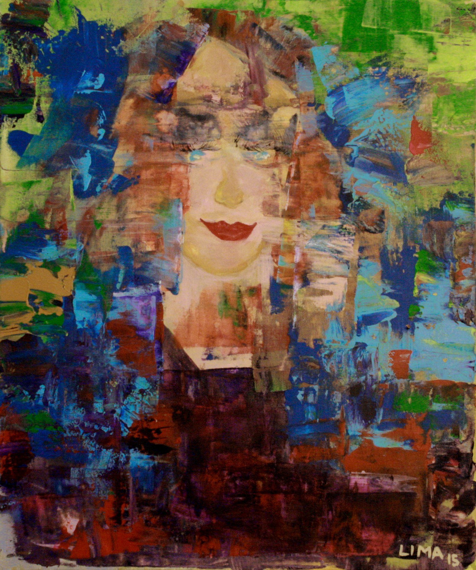 Thinking in Color... My Leo...miaou miaou is an abstract lion. The middle which is more of a brown is the lion's face. The rest of the colors going around it are forming his big thick colorful mane full of emotions. The lion is the ultimate king of the jungle and symbolizes power.