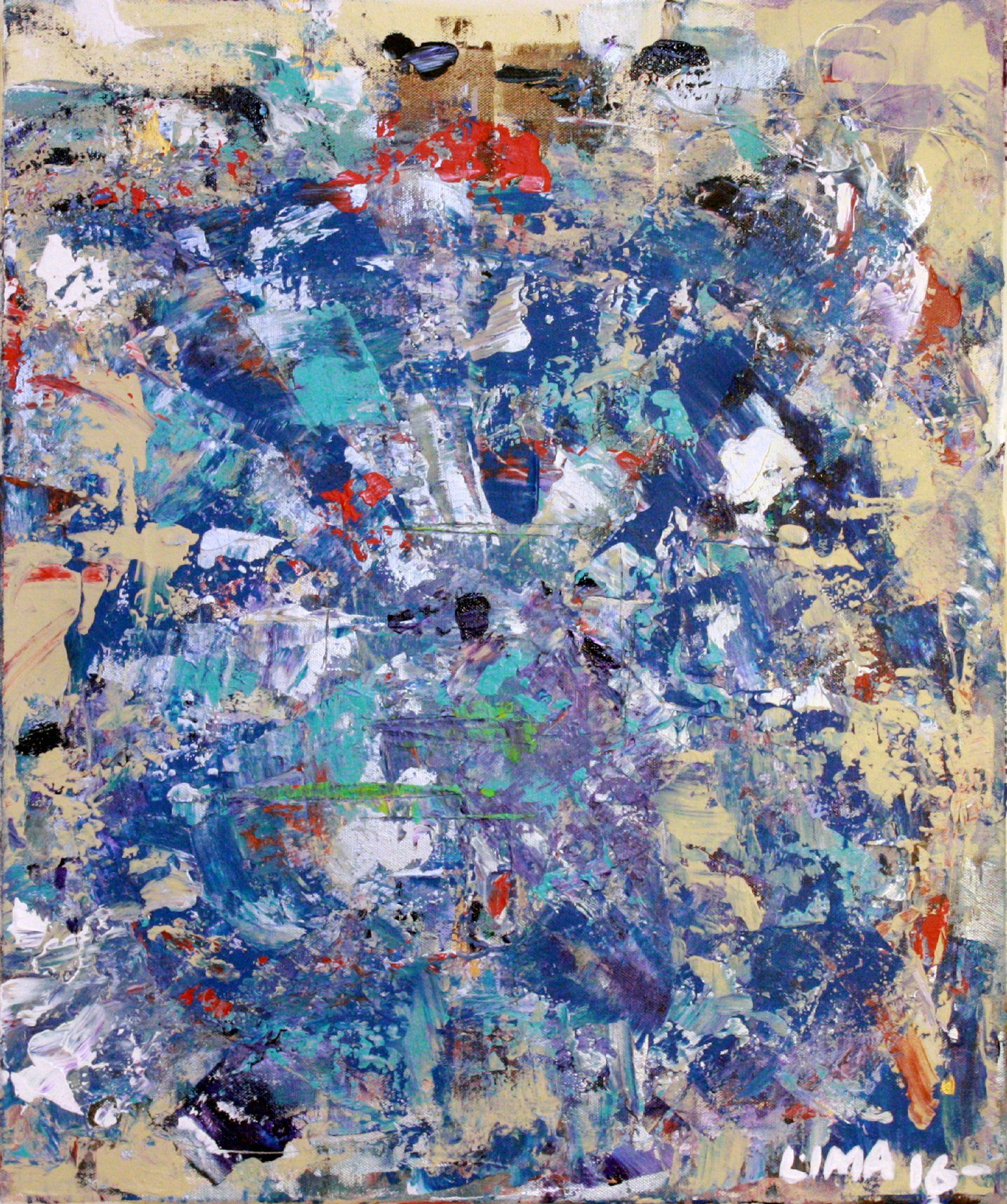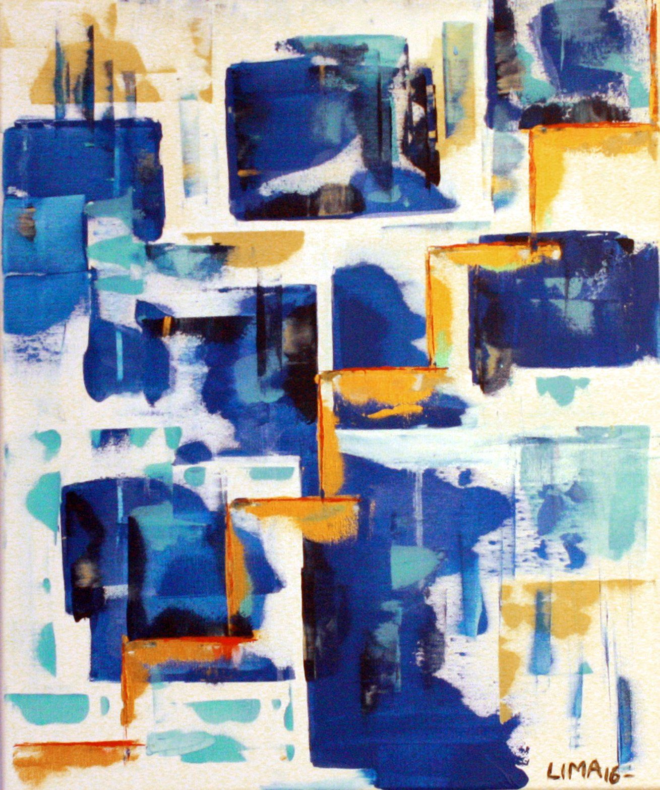 I made this painting in memory of him, with colors that soothed me and reminded me of him and his Greek heritage as well: The ocean and his flag.